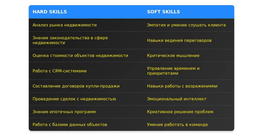 - Акцент на базовые навыки: работа с CRM, основы маркетинга, знание законодательства.