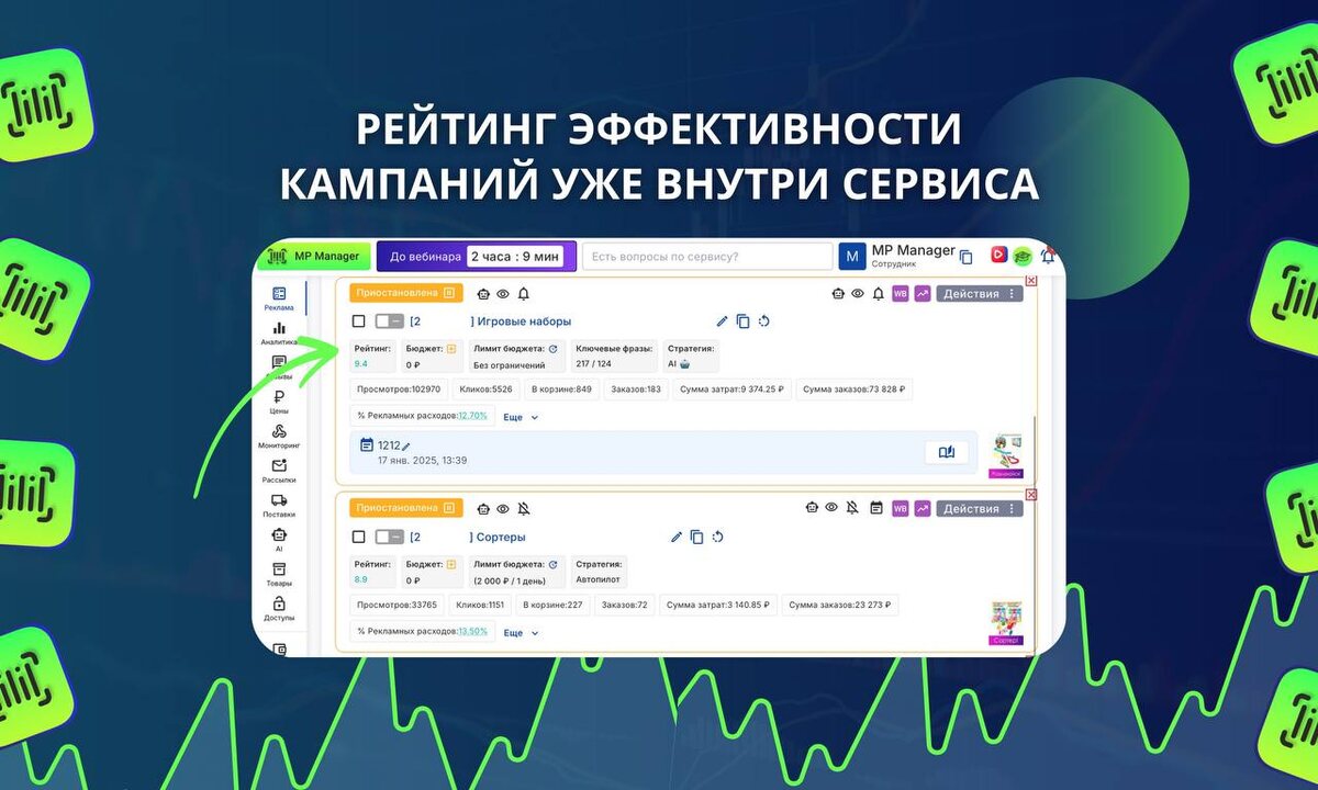 📊 На Wildberries есть рейтинг товаров, MP Manager пошёл ещё дальше и добавил рейтинг рекламных кампаний