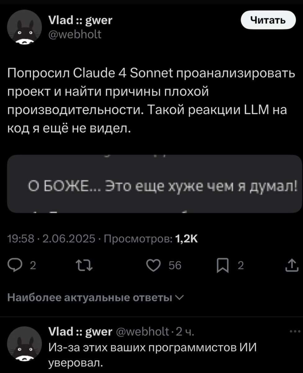 Конечно, вот отредактированный текст: --- Уже и нейросети начали "ломаться" от нашего внимания! 🥲 Пользователь Reddit обнаружил, что можно "сломать" ChatGPT, просто вставив в запрос большой кусок кода. Причём ИИ начинает "зависать" и выдавать бессмысленный текст. А что самое интересное — ChatGPT "ошибается" не сразу. Сначала он даёт более-менее адекватные ответы, а потом, как говорится, всё: "синий экран" в голове нейросети. 🤯 Похоже, даже ИИ нужен перерыв, чтобы не перегреться! 😅 Это ещё раз напоминает нам, что даже самые мощные технологии имеют свои слабости. Как думаете, это баг или "особенность"? Пишите свои версии в комментариях! 👇 #ИскусственныйИнтеллект #Нейросети #Технологии #ChatGPT #БудущееЗдесь https://dzen.ru/id/6821fe32c9ace7504f5575d3