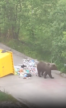 В Башкирии медведь разворошил контейнер с мусором