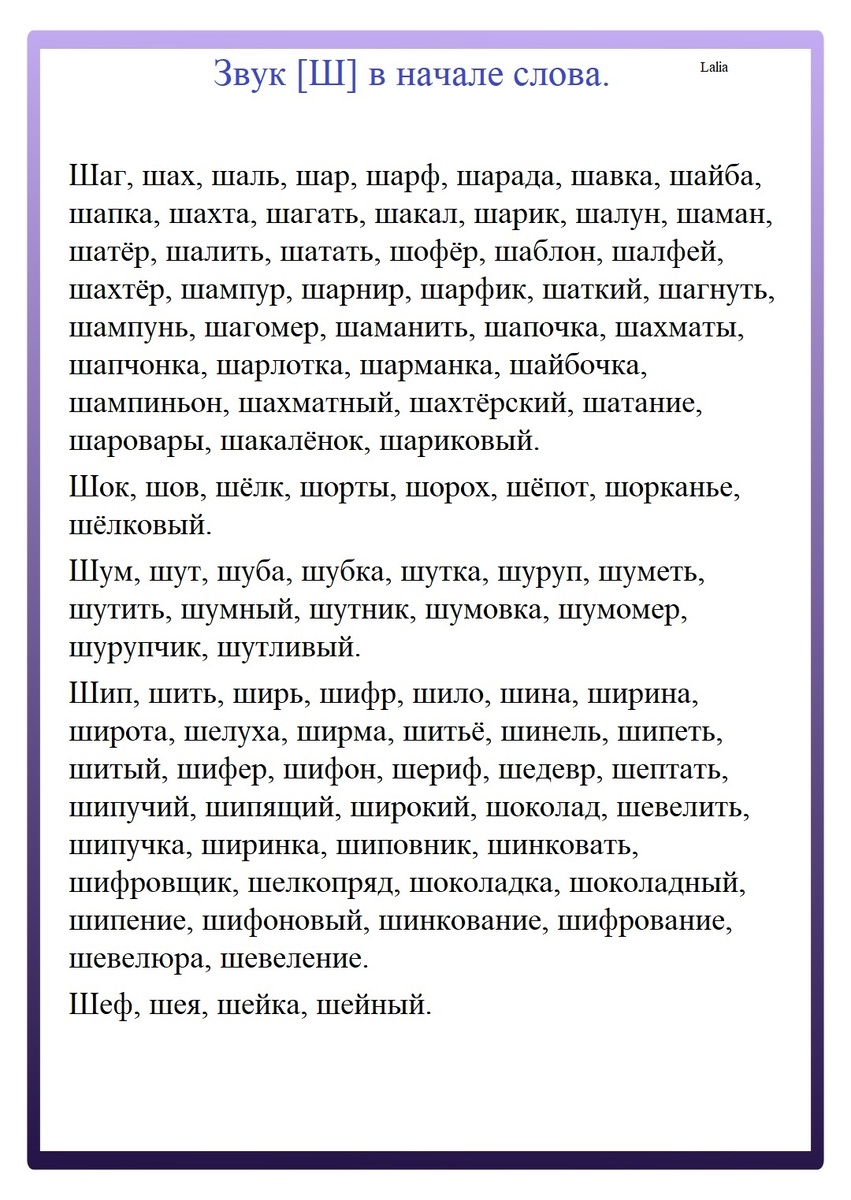 Слова для автоматизации звука [Ш]