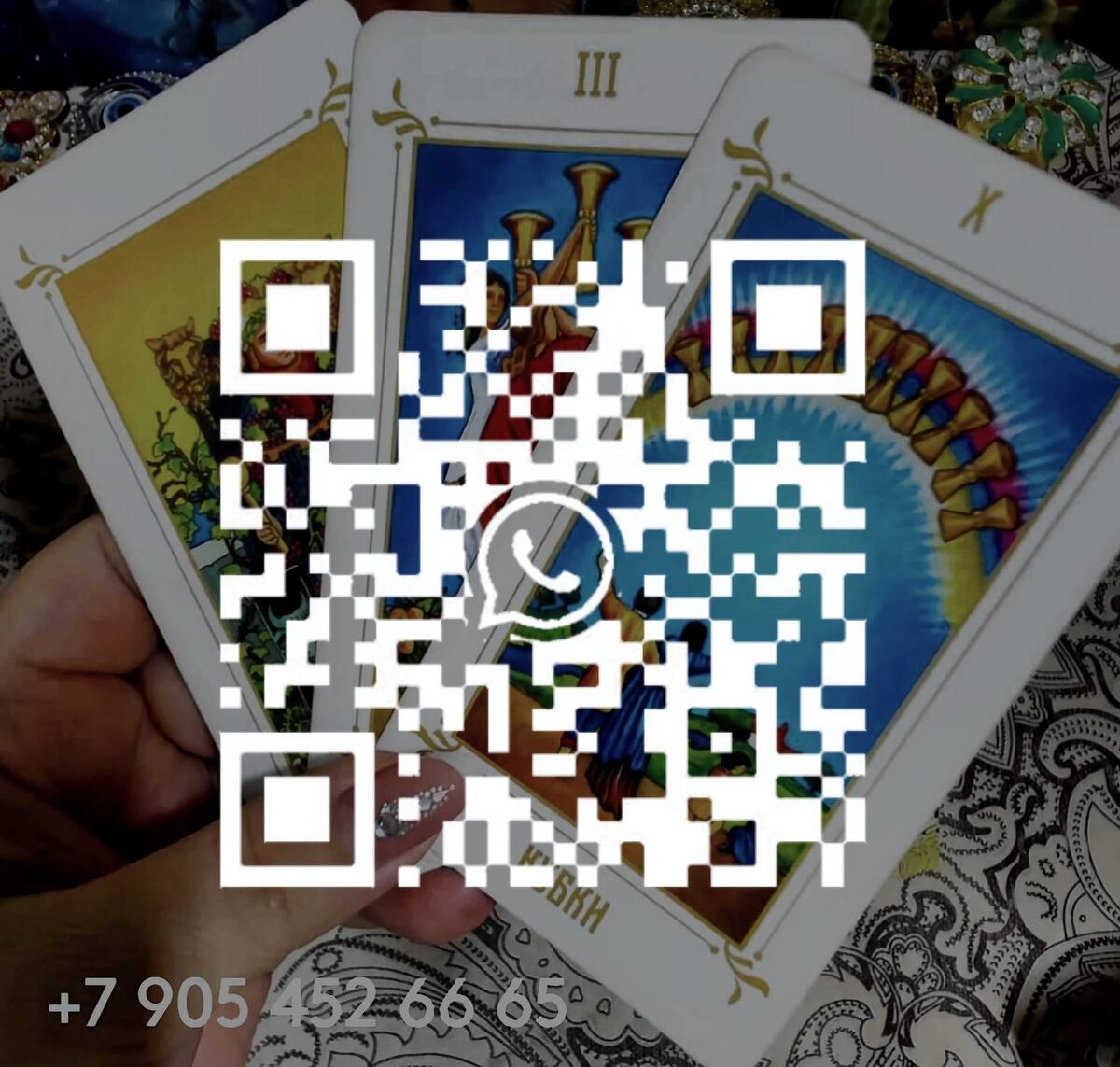 Приоткройте завесу будущего с Таро! ✨ Хотите узнать: какие возможности ждут вас за горизонтом? Готовы встретить вызовы и использовать свой потенциал на максимум? Карты Таро НЕ предсказывают фатальное будущее, НО показывают вероятности и помогают подготовиться к ним❗️ Я помогу вам:🍀 ⭐️Увидеть ближайшие перспективы в любой сфере ⭐️Выявить возможности для роста и развития ⭐️Понять, как избежать потенциальных трудностей ⭐️Сделать шаги к желаемому будущему Получите ценные инсайты, 📱чтобы построить свою лучшую реальность❗️ Для связи со мной: ➡️Пишите в комментариях: "Хочу расклад" ✈️мне лично, в вацап: +7 905 452 66-65 📸Или отсканируйте QR-код #таропрогноз #будущее #возможности #перспективы #саморазвитие #эзотерика #тароонлайн #консультация