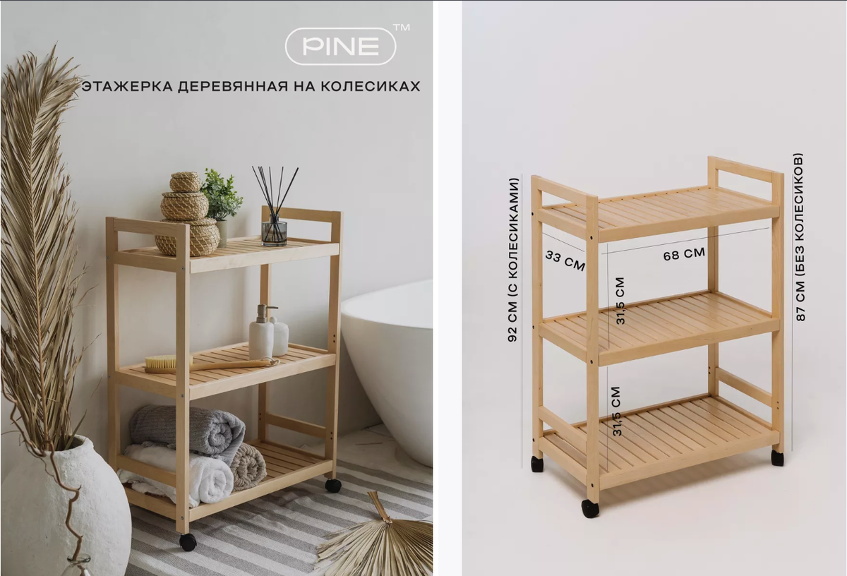 Деревянная напольная этажерка на колёсиках — настоящая находка для любой хозяйки!