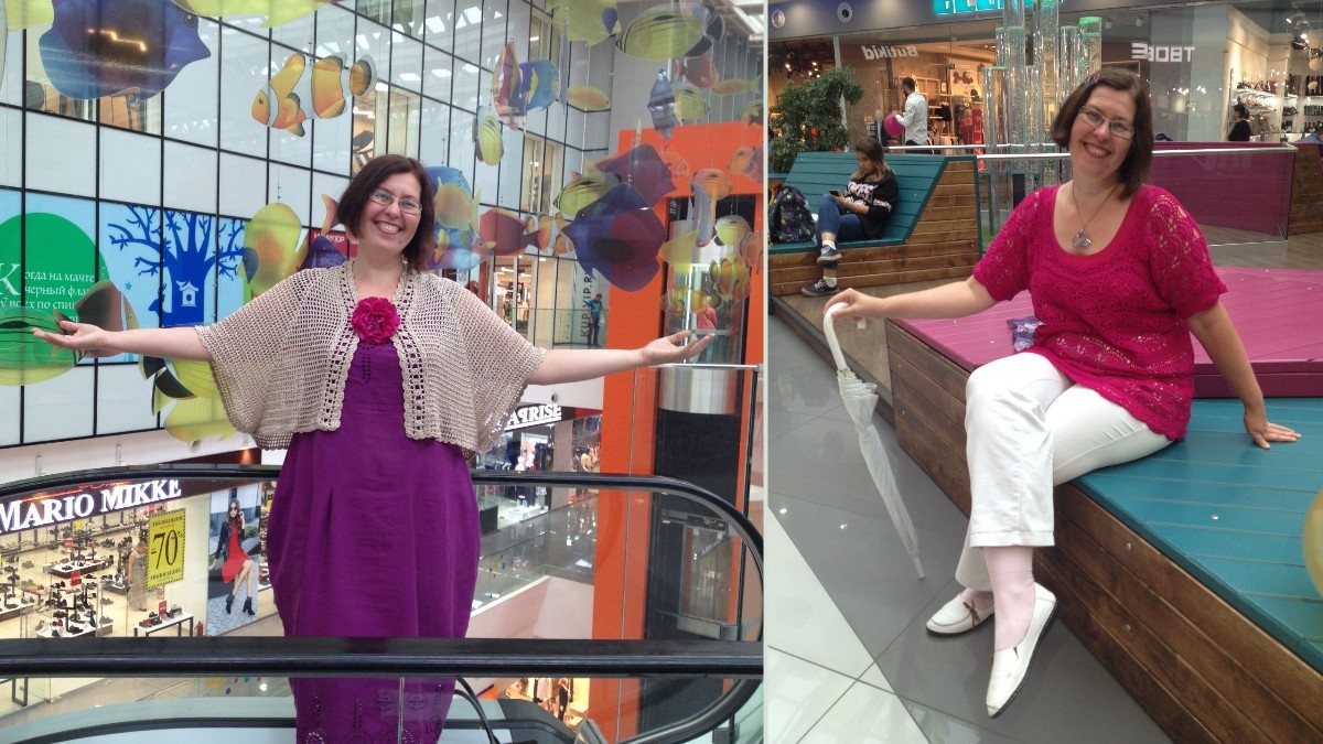 Идеи летних вязаных вещей на примерах собственного исполнения: два жакета, накидка и кофточка с коротким рукавом. В предыдущей статье об одежде для куклы я упомянула, что вязала и себе летние наряды из хлопковой пряжи. Покажу вам 4 из них, фотографии которых имеются. История давняя - летом 2017 года вдруг захотелось мне провести фотосессии любимых вязаных вещей, чтобы не стёрлись они в памяти, когда износятся или станут малы... Над антуражем долго не думала. В обеденный перерыв мы с подругой шли в ближайший к офису торговый центр, я позировала, она фотографировала. 4 захода - 4 наряда. Можно было продолжить, но нам надоело. Теперь приятно посмотреть, вспомнить. Все вещи на тот момент уже не были новыми, с удовольствием носились некоторое количество лет. Недавно я раздала большую часть одежды, так как мой размер значительно изменился. До сих пор подходит кофточка цвета фуксии - только сидит она на мне по-другому, сильнее облегает. Буду рада, если мой небольшой обзор вдохновит вас связат