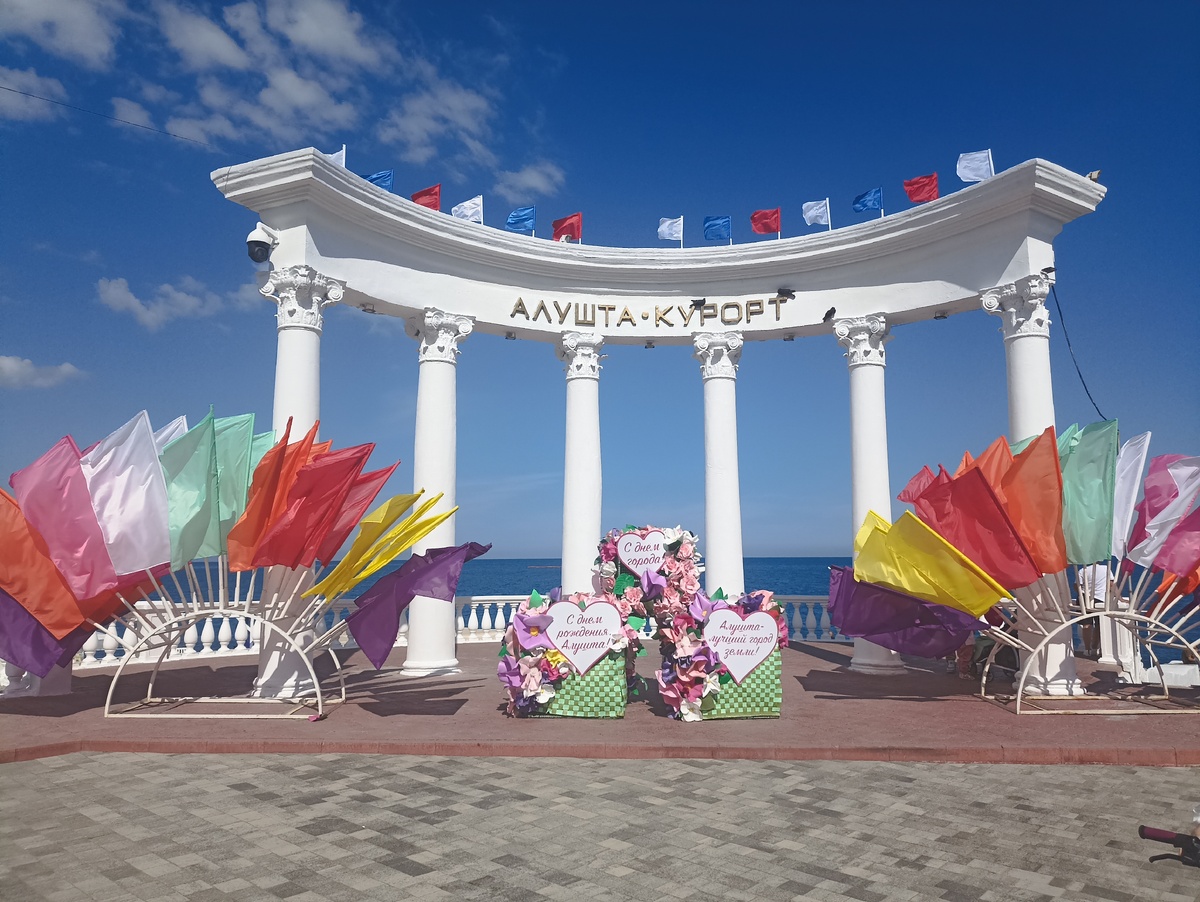 Что вы знаете об Алуште? Я, признаюсь, несмотря на статус крымчанки не могу похвастаться какими-то глубокими познаниями об этом городе. Да и бывала тут всего пару раз, в основном проездом дальше на ЮБК. А зря! Весьма милый курортный городок, для тихого и спокойного отдыха. На прошлых выходных в Алуште праздновали День города. Причем, праздник совпал в Днем защиты детей. Мы решили съездить и поглядеть на веселье, потому как в родной Керчи уже долгое время нет никаких массовых гуляний по причине установления желтого уровня терропасности. И не прогадали! На алуштинской набережной и прилежащих улочках было шумно и весело. Все украшено не только искусственными цветами и флажками, но и настоящими живыми композициями из пальм, роз, кактусов, вьюнков и прочих цветов, деревьев и кустов. Мне понравилось, что несмотря на узенькие улочки и скромные размеры самого города, тут стараются использовать каждый кусочек земли. Да, что там земли - даже стены, крыши и даже водоотводящие трубы они умело и