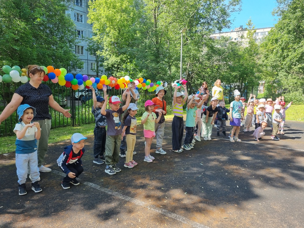 С раннего утра территория детского сада (здание 8) была украшена разноцветными шарами и цветами. Детей встречали доктор Пилюльки, Смешинка, Веселинка и Красно Солнышко, которые подготовили для ребят различные эстафеты, конкурсы и игры.