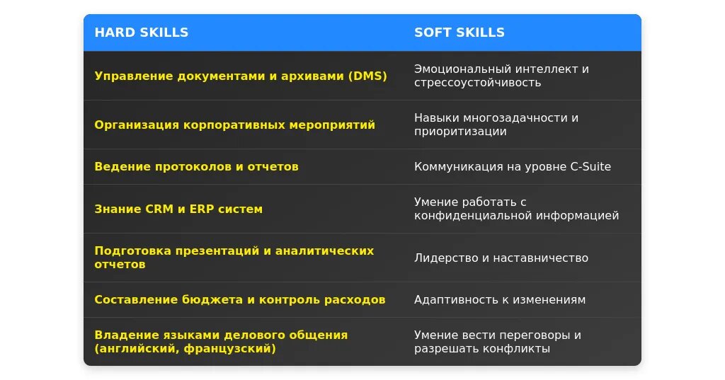 При адаптации навыков важно перегруппировать их, выделив наиболее релевантные для вакансии. Например, если в вакансии требуется знание CRM-систем, добавьте этот навык, даже если он не был основным. Используйте ключевые слова из описания вакансии, такие как "организация встреч", "работа с документацией", "владение английским языком".