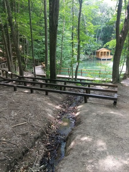 Вокруг озера уложены деревянные настилы с поручнями. Теперь объект смогут посещать и маломобильные туристы. Устроены указатели, информационные доски и плакаты.