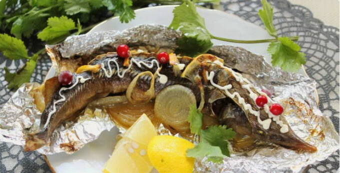 Осетр – 10 рецептов приготовления Осетр – это поистине царская рыба, которая украсит любой праздничный стол и удивит всех ваших гостей, собравшихся по любому поводу. Из этой полезной и вкусной рыбки можно приготовить самые разнообразные кушанья, которые подарят вам непередаваемое гастрономическое наслаждение: заливное, шашлык или балык. Также для придания блюду оригинальности, осетра не только жарят и запекают, а также фаршируют и дополняют овощами. Осетр, запеченный целиком в духовке Осетр, запеченный целиком в духовке – это блюдо, идеально подходящее для внесения разнообразия в ваш привычный рацион. Нежное мясо прекрасно сочетается с дольками репчатого лука и кислого лимона, а чтобы рыбка не прилипала к фольге, рекомендуем добавлять небольшое количество оливкового масла. 4. Осетр 2 шт. (небольших) 5. Лук репчатый 2 шт. 6. Соль по вкусу 7. Масло… #Вторые_блюда Подробнее: https://grocerino.ru/kulinarnye-recepty/vtorye-blyuda/osetr-10-receptov-prigotovleniya/