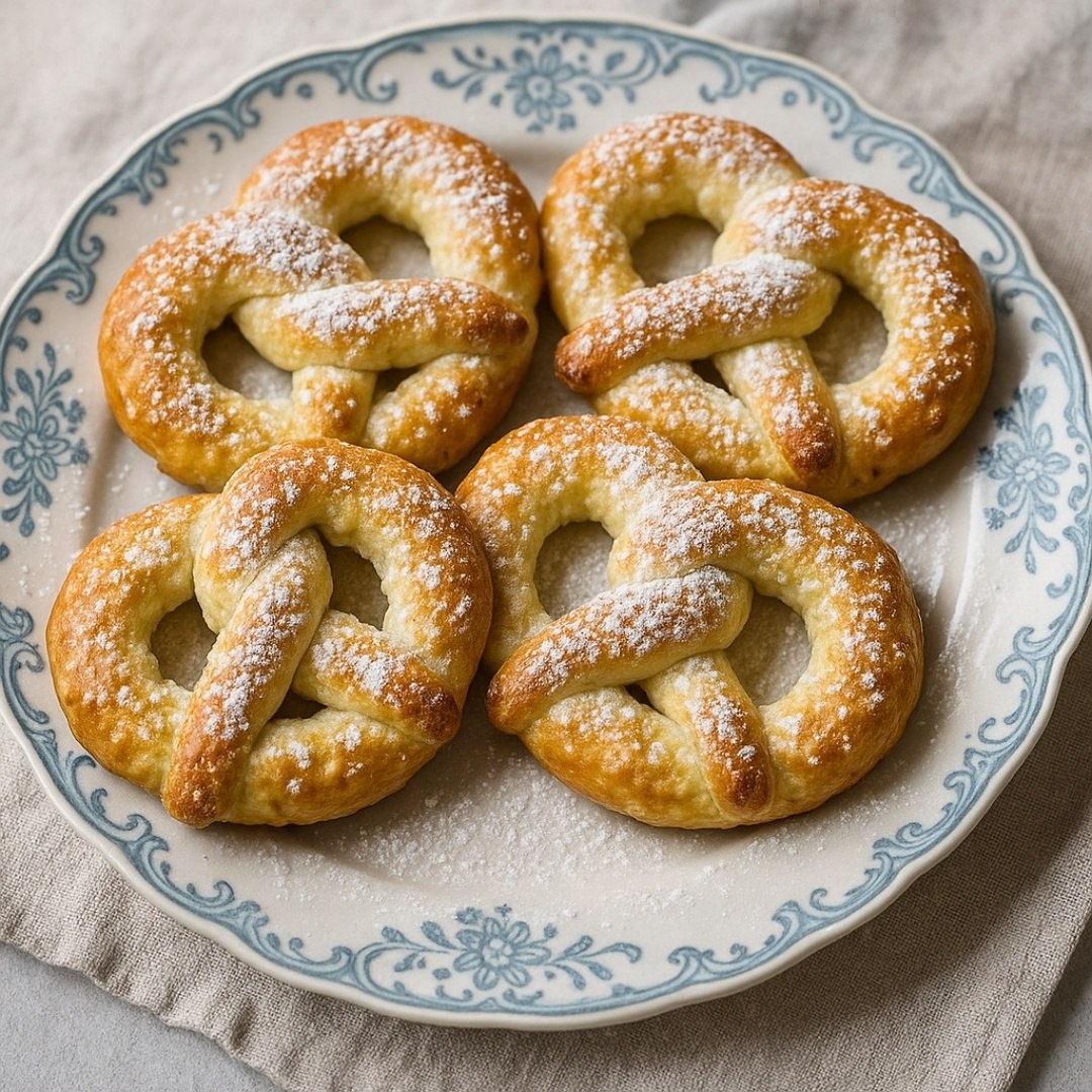 Творожные крендели Ингредиенты⤵️ 🔸Творог — 200 г 🔸Мука — 200 г 🔸Сливочное масло — 50 г 🔸Яйцо — 1 шт. 🔸Сахар — 2 ст. л. 🔸Разрыхлитель — 1 ч. л. 🔸Ванильный сахар — 1 ч. л. 🔸Соль — 1 щепотка Приготовление🥨 1. Разотри творог с яйцом, сахаром, солью и ванилью. 2. Добавь размягченное масло, муку с разрыхлителем, замеси тесто. 3. Раскатай пласт толщиной 5–7 мм, нарежь полосками и сверни кренделями. 4. Выпекай при 180°C 15–20 минут до румяности. Рецепт дня #крендели #творожные_крендели #творог #мука #яйцо #выпечка #десерт