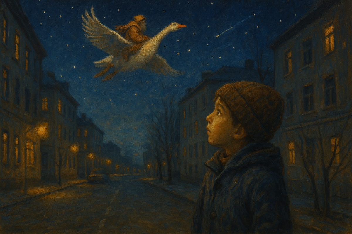 — В небе плывёт не облако, а говорящий гусь.