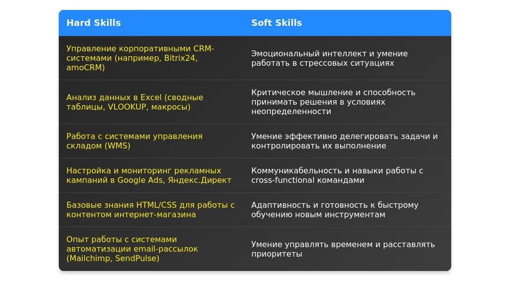 Анализ вакансии для помощника руководителя в интернет-магазине