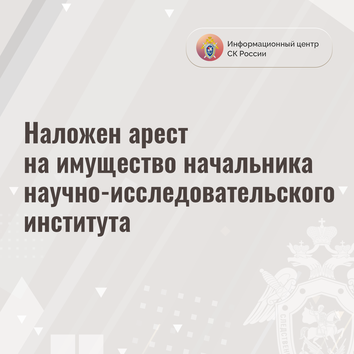Наложен арест на имущество начальника научно-исследовательского института