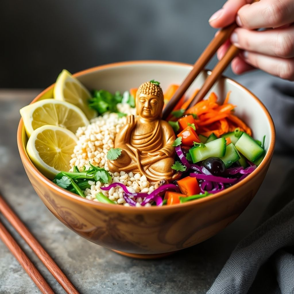 Сегодня я напишу вам о самом модном веганском блюде, которое покорило Instagram и желудки всех хипстеров от Москвы до самых до окраин! Перевод - чаша Будды. Представьте себе: вы просыпаетесь утром, смотрите в холодильник и понимаете - мясо кончилось! А тут еще и сосед-веган хвастается, что его боулчик за неделю вырос на три сантиметра и начал петь колыбельные. Что делать? Правильно - готовить! Все лежит на тарелке порционно, рядом. Порции не смешиваются, а располагаются по отдельности. Теперь вы знаете, как приготовить самый модный веганский боул! P.S. Если вдруг кто-то спросит, что это за штука у вас в тарелке - смело отвечайте: “Это не просто еда, это философия!” P.P.S. А если честно - это просто очень вкусно!