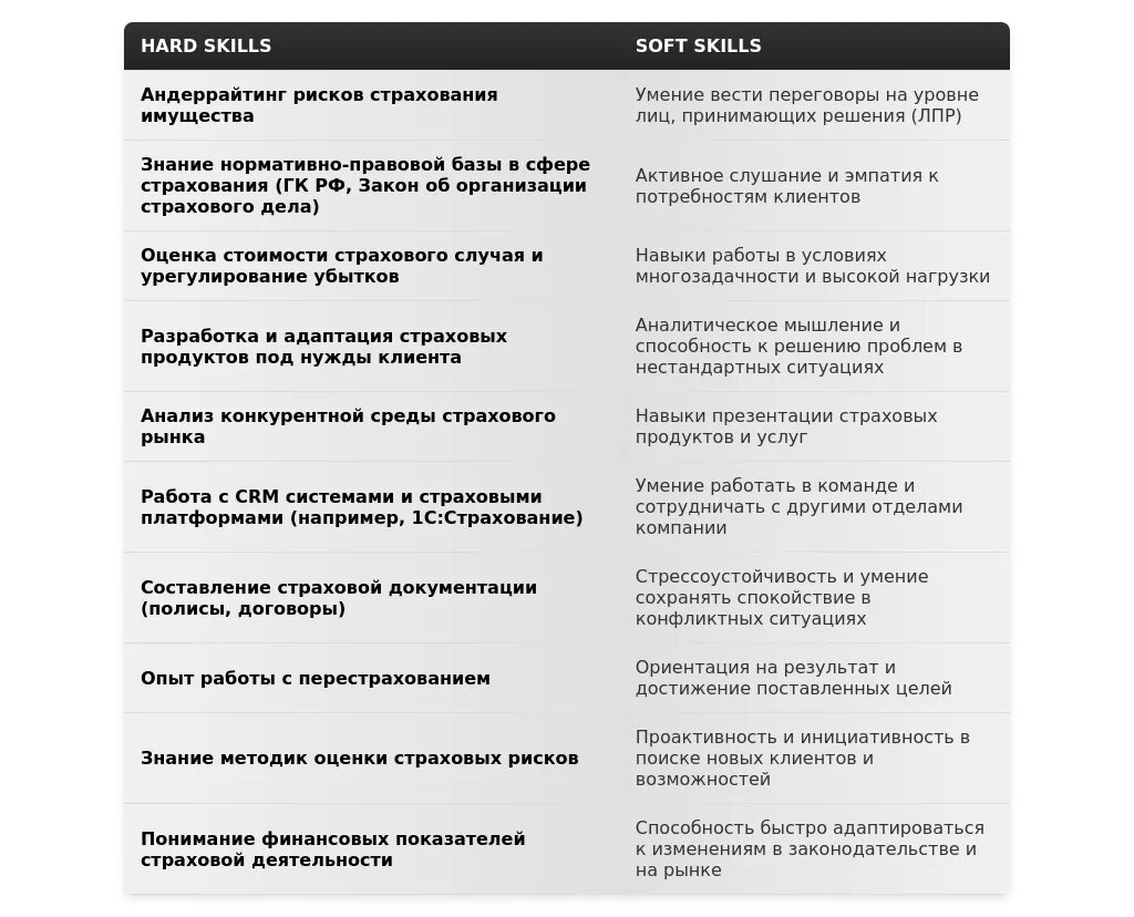 Адаптация раздела "Навыки" для менеджера по страхованию