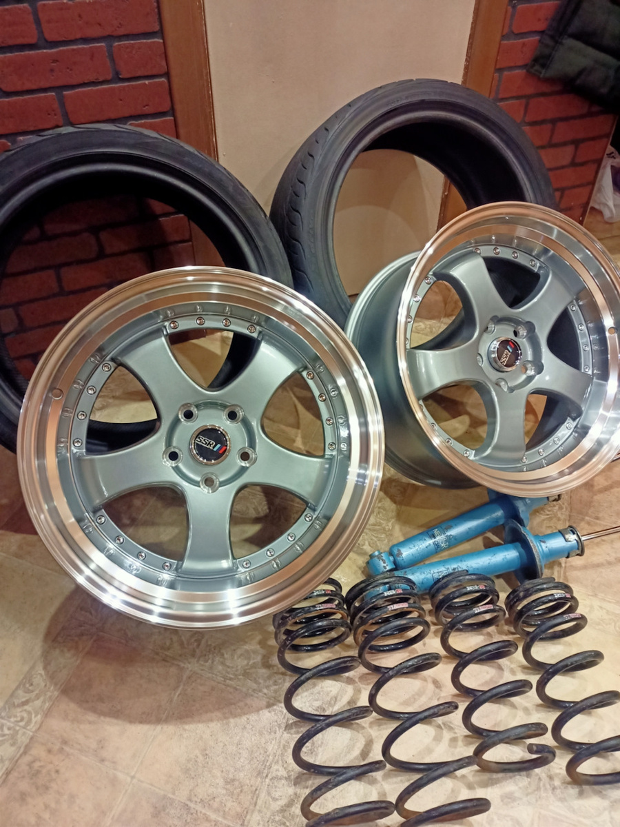 Наконец пришел комплект колес которые я искал ssr sp1. Обошлись они в 38000. Заказывал у анику . Параметры колес 8.5 на 25вылете и 9.5 на 20 вылете Так же потихоньку собираю к лету набор уличного гонщика . Резина 225/40/18 . Пружины rsr . И пока что пара задних стоек каяба . Каябы обошлись в 1000 р + ещё вместе сними шли красные пружины с занижением, подозреваю что это пружины танабэ . Пара пружин возможно будет продаваться тыщи за 1.5. Морда встаёт в аккурат с аркой . То что я и хотел . Доработок по морде на мой взгляд не требуется. Выглядит сочно А вот по жопе получается немного широко. Но в принципе ни чего креативного. Зад ещё ляжет ниже за счёт пружин и думаю что колесо ещё немного уйдет внутрь . Так же есть возможность подправить все это дело развалом . Были куплены ещё скрытые вентеля. Но доверия они чет не внушают . Но выглядит полка без соска четко. Со скрытым соском Есть ещё комплект металлических сосков . Купил самые коротки. Сделаны с нержавейки. На вид качественные. Возмо