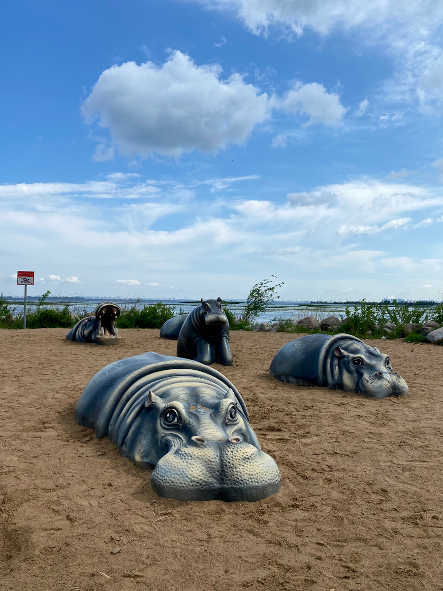 Выдался у нас вчера с мужем внеплановый выходной, и мы решили сгонять куда-нибудь за город (но недалеко). Я, конечно, захватила с собой пару кукол, чтобы пофоткать их на природе. Начали мы с парка «Стрельнинская бухта», где располагается весьма забавный пляж с бегемотиками: Купаться на этом пляже, кстати, запрещено, но, честно говоря, не слишком и хочется - вдоль берега все заросло травой, к воде не подойти (хорошо, что я в последний момент передумала брать кого-то из русалок). Зато виды красивые. Долго там мы задерживаться не стали, было ветрено, мой южный супруг быстро стал замерзать, и мы двинулись дальше - в сторону дворцово-паркового ансамбля «Михайловка». Пару лет назад мы, гуляя от Шуваловки до Петергофа, забрели на территорию заброшенной усадьбы «Знаменка», и она нас очень впечатлила. Михайловка находится недалеко, до нее легко добраться (если не считать одного довольно грязного после дождя участка). Дворец великого князя Михаила Николаевича, хоть и находится в запустении, вс