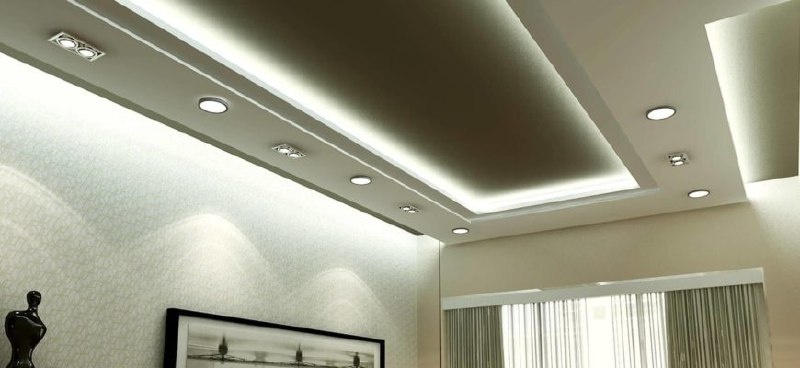 Двухуровневый потолок из гипсокартона в гостиной Двухуровневый потолок из гипсокартона в гостиной