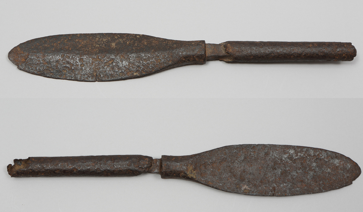 Место находки не указывает ни храм, ни поле боя. Всего лишь земляной скат, уходящий в заросли бамбука в районе Тоно. Рядом — следы старой тропы и обломки деревянной рукояти, давно истлевшие. Артефакт — железный наконечник, чуть изогнутый, с втулкой, длиной чуть больше ладони и весом почти в 700 граммов.