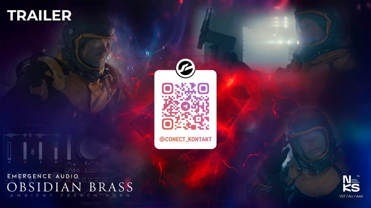 Obsidian Brass Сэмплы валторны Kontakt Издатель: Emergence Audio Формат: KONTAKT 7.7.3+ Качество: Стерео 48 кГц 24 бита Размер: 3.72 GB Содержание:⭐️ Более 50 вариантов: свёрточная реверберация, дилэй, хорус, фэйзер, ротатор, стерео-имитатор, дисторшн, сатурация, лоу-фай, плёночная сатурация. Расширьте возможности с помощью премиальных свёрточных ревербераторов и инвертирующих аттенюаторов в разделе эффектов - это контроль нового уровня. Описание: Атмосферная валторна. Бесконечное движение. Технология Non-Static Sampling, разработанная основателем Майклом Виньолой, появилась из стремления передать то, что делает живые инструменты по-настоящему человечными: изменение тембра с дыханием, дрожание текстуры под давлением, углубление резонанса со временем. Вместо фиксации одного идеального момента этот метод сохраняет естественное развитие звука, позволяя каждой ноте эволюционировать, двигаться и мягко трансформироваться во время сустейна. Каждый новый штрих раскрывает дополнительные де