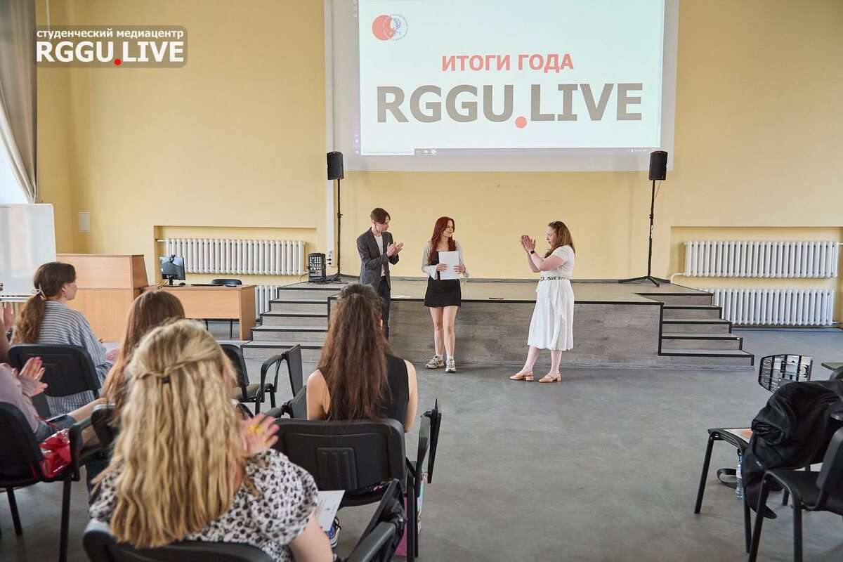 🤩 Итоги года команды RGGU.LIVE 🏆 29 мая в 600 аудитории 6 корпуса РГГУ состоялось подведение итогов и торжественное награждение активистов студенческого медиацентра RGGU.LIVE. Мероприятие организовано при поддержке Департамента по работе с молодёжью 👨💻 На протяжении учебного года ребята креативно освещали студенческую жизнь РГГУ, отправлялись на различные мероприятия за пределы вуза и просто радовали подписчиков качественным контентом! ⚡️ Кульминацией встречи стало торжественное вручение благодарственных писем активным представителям RGGU.LIVE. Благодарности вручили Анастасия Некрылова, заместитель начальника Управления пресс-службы и информации, начальник отдела пресс-службы РГГУ, и Дмитрий Чапков, руководитель студенческого медиацентра RGGU.LIVE: «Этот учебный год стал для нашей команды очень продуктивным! Суммарно мы привлекли на медиаплощадки более 1000 новых подписчиков, осветили более 100 мероприятий и превысили отметку в 1,5 миллиона просмотров. Горжусь нашими активиста