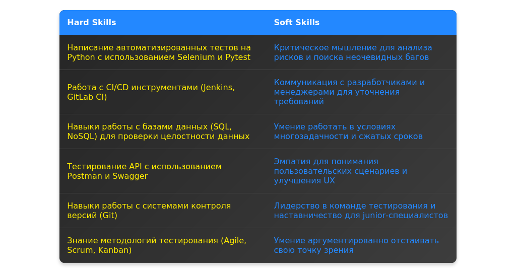 После адаптации: "Глубокое знание SQL и Python для автоматизации тестирования и анализа данных."