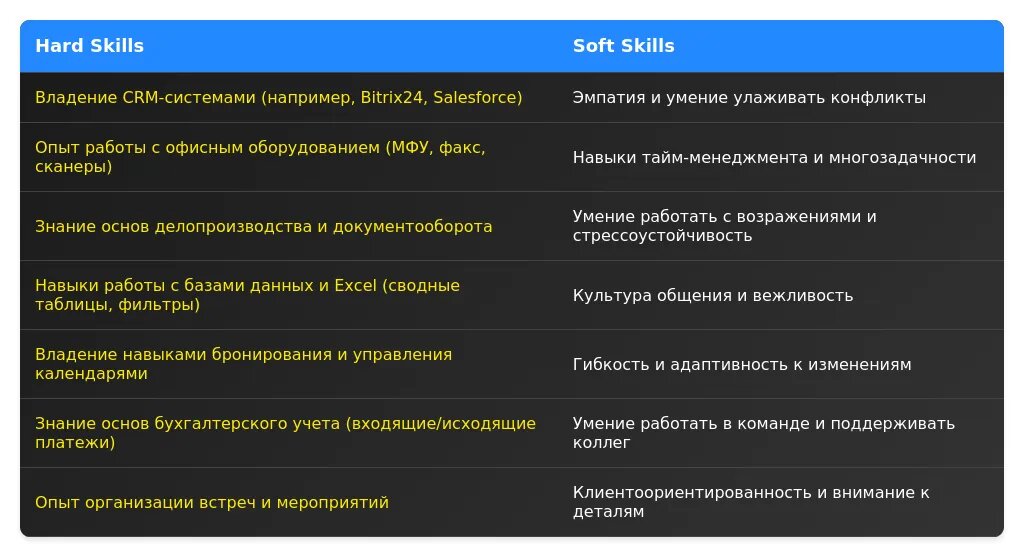 - Добавьте навыки, которые не указаны явно, но могут быть полезны, например, "знание основ бухгалтерии".