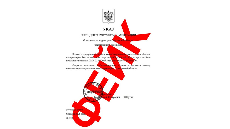 В интернете распространяют фейковое сообщение о введении чрезвычайного положения в Саратовской области. Об этом сегодня сообщили в региональном правительстве. Как следует из опубликованного скриншота, злоумышленники ссылаются на несуществующий указ Президента от 2 июня. В тексте говорится, что «в связи с террористическими атаками Украины на стратегические объекты на территории России» в Саратовской области 3 июня на 30 дней установлено чрезвычайное положение. Кроме того, в «указе» отмечено, что в области следует открыть временные мобилизационные пункты и «выдать повестки» мужскому населению. Чиновники посоветовали не верить указанной информации, а доверять только официальным источникам. Напомним, сегодня мэр Саратова Михаил Исаев рассказал о фейковых постах от его имени. В них говорилось о возможной атаке на аэродром и введенном повышенном режиме готовности.