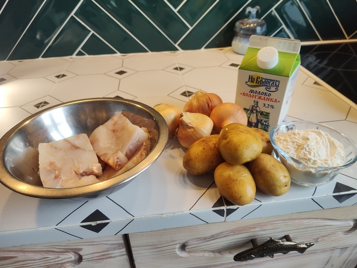В русской печи соус с картошкой бы еще запеклись сверху до корочки. Можно и в духовке доработать, если у сковороды снимается ручка. Но у меня вышло так. Ингредиенты: Тресковые кубики - 4 шт (400 г) Картофель - 300 г. Лук - 300 г. Молоко - 300 г. Мука - 50 г. Сливочное масло для жарки (50г) Процесс: Картошку варим в мундире, рыбу солим, лук жарим. Когда лук станет мягким и золотистым, расчищаем место и добавляем рыбу. Пока рыба жарится, смешиваем муку и молоко. Перчим. Достаем вареный картофель. Кидаем в помакуху. Заливаем мучным молоком. Тушим еще 10 минут. (В идеале в духовке, чтобы соус тоже получил корочку) Пищевая мощность для этих граммовок: 110 ККал; Белок 7, 4; Жиры 4, 3; Углеводы 10, 3. Подписаться на Пикабу Познавательный. и Пикабу: Истории из жизни.