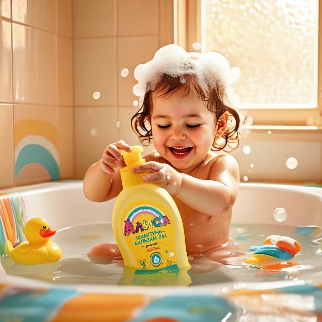 💦 Шампунь-бальзам 2 в 1 для детей Алиса, мягкие локоны - идеально подходит для девочек от 2 лет. Этот шампунь бережно очищает волосы и кожу головы, не щиплет глазки и помогает избежать слёз. Сбалансированный состав с экстрактом банана, протеинами пшеницы, овсяным и кокосовым молочком, а также пантенолом питает волосы, насыщая их витаминами и макроэлементами.