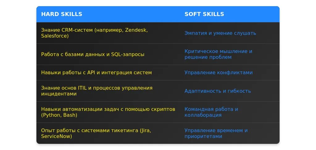 После адаптации: "Навыки работы с CRM-системами (Zendesk, Salesforce), решение клиентских запросов, английский язык (Intermediate)."