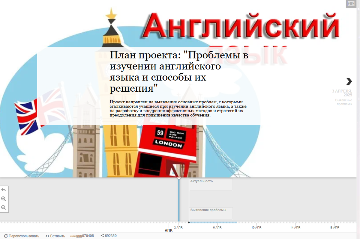 Хронолиния для проекта: "Проблемы в изучении английского языка и способы их решения"