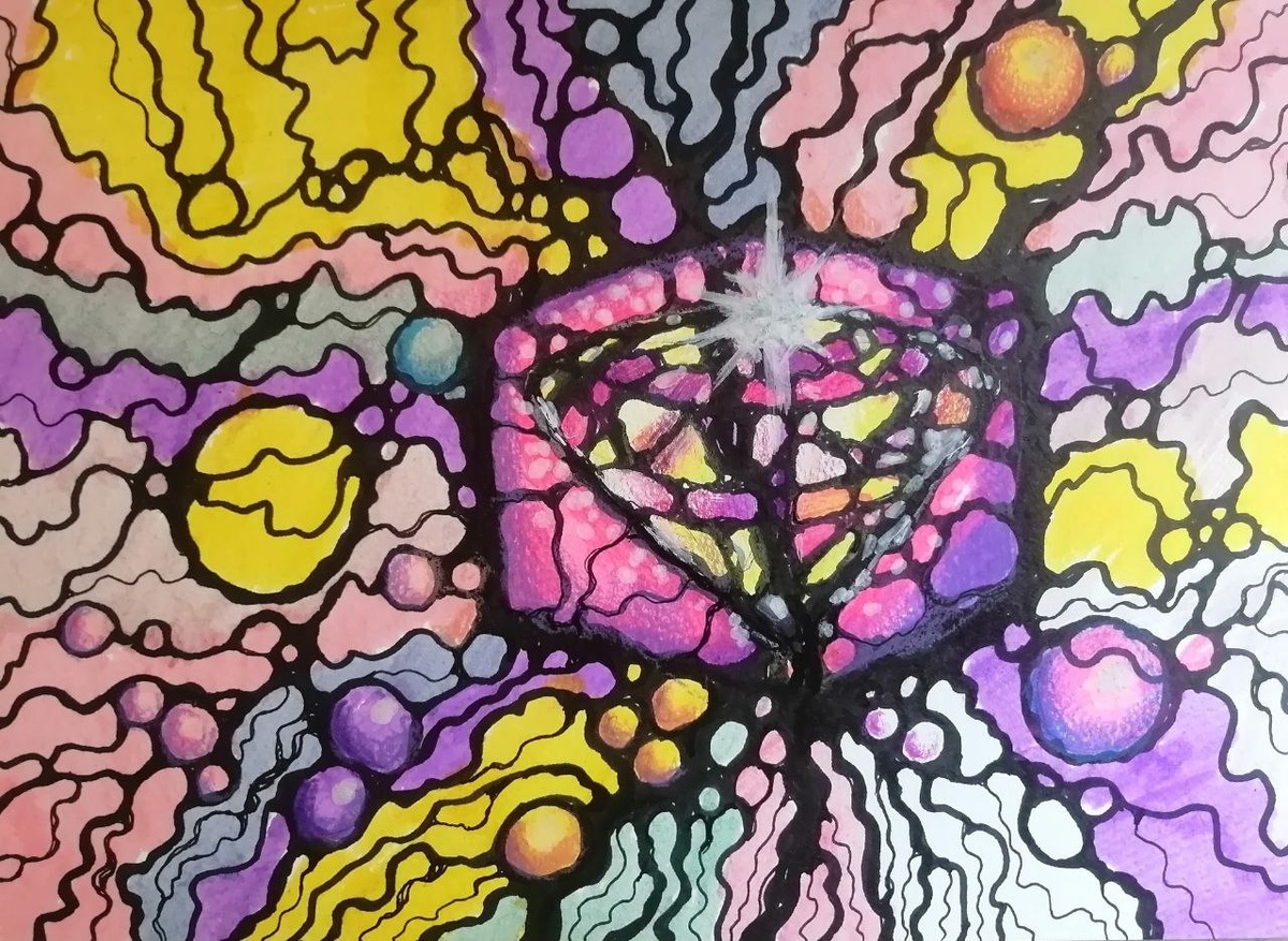 #чёрныйящик #3 Вчера так душевно прониклась темой, нарисовала второй мой чёрный ящик. Утром проснулась с пониманием того, что мне не нужно пользоваться очками. Надо попробовать жить без них. Поняла, что вчерашнее рисование так изменило сознание. Уже вечер, я так и хожу без очков. А у меня +3,5. Пока не совсем комфортно. Но есть чёткое желание... Всплыло... в момент рисования с Людмилой, в самом начале, когда она только заговорила о чёрном ящике, мне очень захотелось открыть его. И я "увидела", что внутри лежит кристал. Поэтому сегодня появилось желание изобразить то, что увидела. Причём рисовала прищурясь. Зрение- то не очень пока😉. Может там не очень чётко с линиями... Благодарю за этот алгоритм. Всё никак не успокоюсь🌸🌸🌸🙏😀
