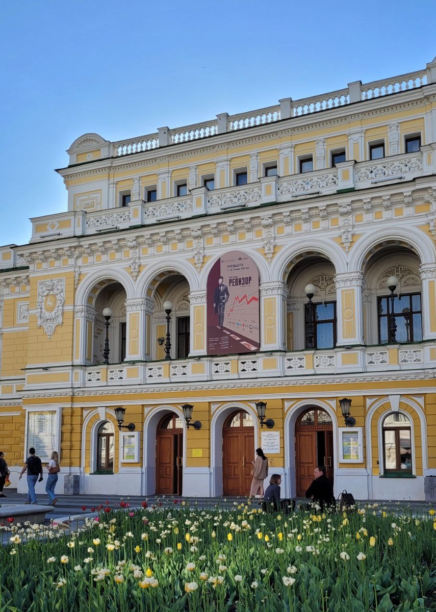 Не могу назвать себя заядлой театралкой. Иногда выбираюсь, но премьеры не отслеживаю, как и популярные постановки. По возможности, во время поездок, посещаю локальные храмы искусств. И при составлении программы поездки в Нижний Новгород я изучила театральную афишу. Выбор пал на театр драмы на Большой Покровской и постановку "Господа Головлевы" по Салтыкову-Щедрину. Билет я покупала на сайте и выбрала бельэтаж. По фотографиям он мне показался уютным и с хорошим обзором. Перед спектаклем зашла в буфет. Расположен он в полуподвальном помещении. Ценник радовал и как-то компенсировал унылость пластикового стаканчика. За эту композицию (200 г Дербентского и бутерброд с колбасой) я отдала вроде 265 рублей. Фойе выглядели пустынно. Оно и понятно: конец мая и чудесная погода располагают к приятным прогулкам, а не к созерцанию жизненных драм на сцене. Капельдинеры настойчиво предлагали переместиться в партер, но я все же предпочла остаться в одиночестве в ложе бельэтажа. Партер заполнился прим