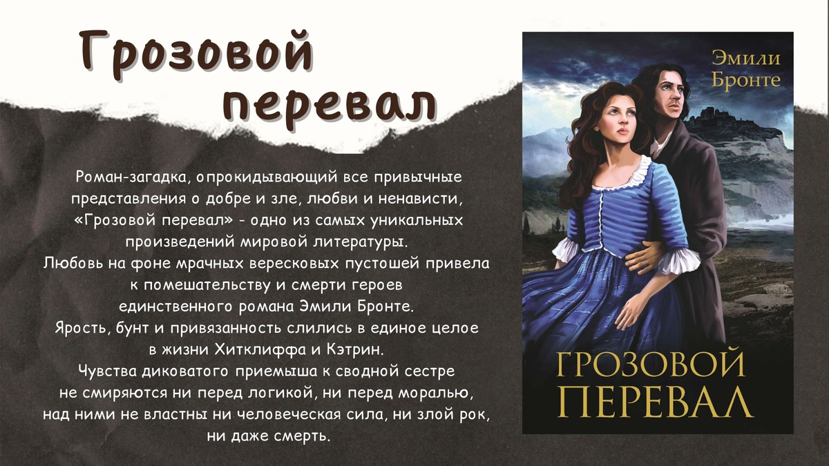 «Грозовой перевал» Эмили Бронте — это мощное исследование человеческой природы, где любовь, месть и страдание переплетаются на фоне суровых йоркширских пустошей. История Хитклифа и Кэтрин, полная страсти и трагизма, остается одной из самых запоминающихся в мировой литературе. Роман заставляет читателя задуматься о природе любви, последствиях социальных барьеров и возможности искупления. Несмотря на мрачную атмосферу, финал дарит надежду на примирение и возрождение, делая «Грозовой перевал» вечным произведением, которое продолжает волновать сердца.