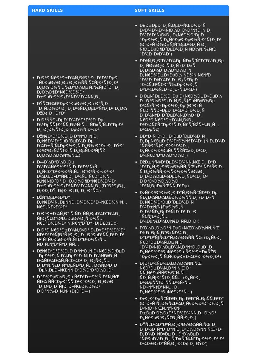 Раздел "Навыки" – это список ваших профессиональных навыков и компетенций. Он должен быть адаптирован под требования конкретной вакансии.