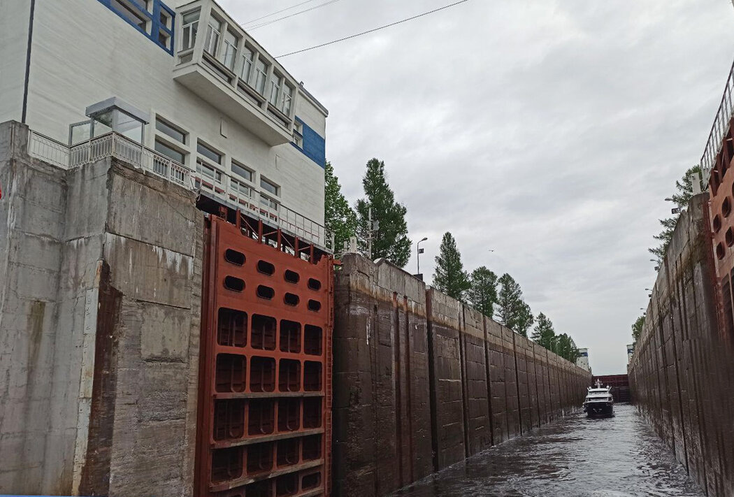 ГПТ (город поселкового типа) Вытегра – это не только бывшая столица корабелов и родина загадочного антисоветского поэта Николая Клюева. Это, прежде всего, «нижняя ступенька» знаменитой «Вытегорской лестницы» – шести шлюзов Волго-Балтийского канала, по которую наш теплоход за ночь спустился на 80 метров к подножью Онежского озера. Для современного человека, приросшего своей «пятой точкой» к сидушке у монитора, простой спуск с 80-метровой пологой горки будет настоящим подвигом. А тут – водяной каскад с препятствиями для 130-метрового судна... Честь и слава речникам! Как я уже говорил, отношусь я к ним с великим уважением. Надо сказать, что прохождение шлюзов за 220 лет (именно тогда и была построена первая «ступенька Вытегорской лестницы») мало, чем изменилось. Разве что раньше суда в шлюз затаскивали бурлаки, а сегодня оно винтами направляется. Но начальство Волго-Балтийского водного пути ничего не говорит о внедрении в процесс навигации столь популярных сегодня «квантовых скачков». А п
