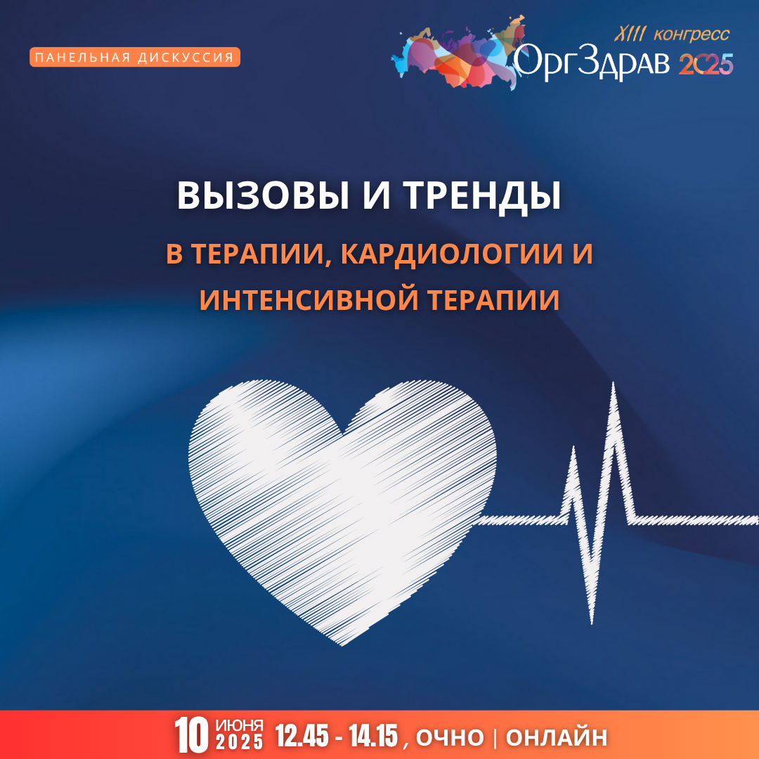 10 июня, 14:15–15:45 в рамках конгресса "Оргздрав-2025" состоится панельная дискуссия «Вызовы и тренды в терапии, кардиологии и интенсивной терапии» — с участием лидеров мнений и ведущих экспертов страны. 📌 Обсудим: • Решение ключевых проблем специальности в рамках НП «Активная и