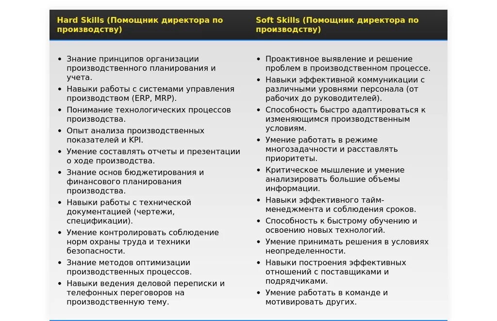 Стратегия адаптации резюме помощника директора по производству