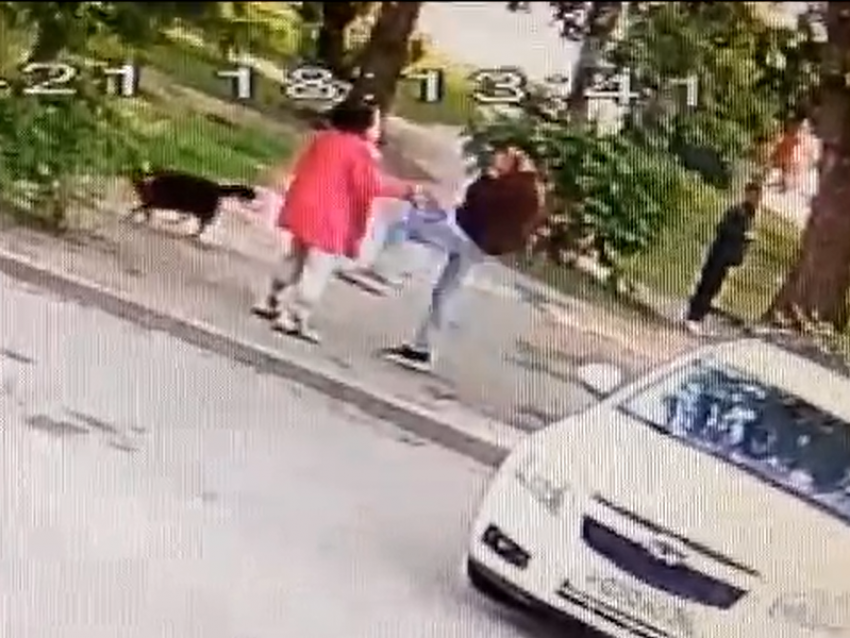 На видео, которое прислали в редакцию, агрессивный прохожий пинает женщину.