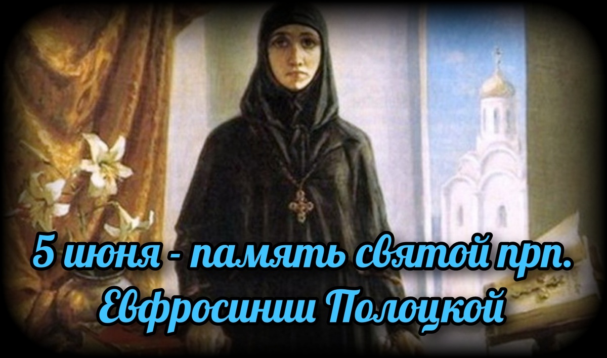 - Завтра, 5 июня, Православная Церковь будет праздновать память святой преподобной Евфросинии Полоцкой, считающейся небесной покровительницей женского монашества.