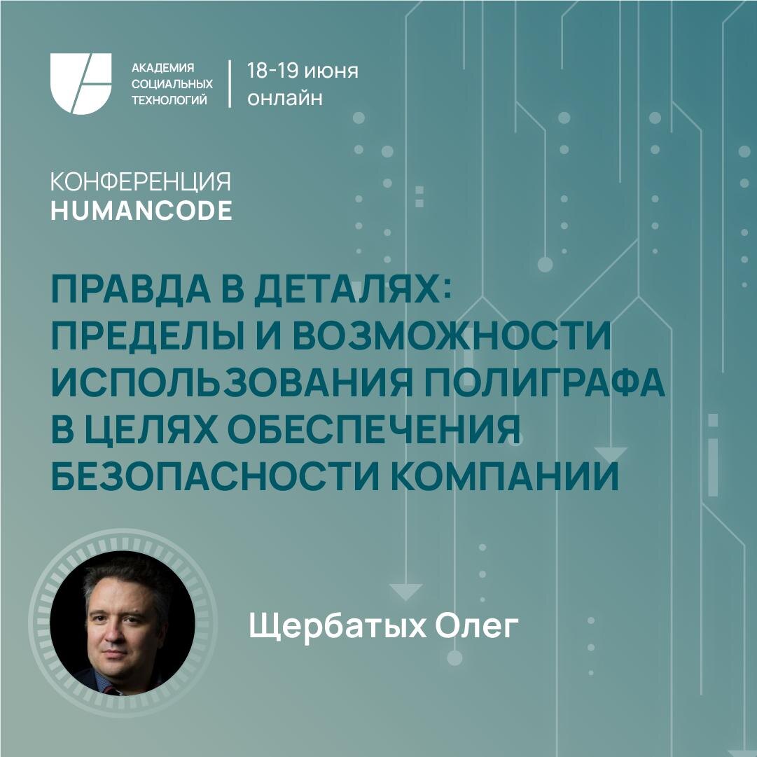 Продолжаю представление участников конференции предстоящей конференции HumanCode 18-19 июня 2025 г. Олег Щербатых Правда в деталях: пределы и возможности использования полиграфа в целях обеспечения безопасности компании. Олег - президент ассоциации полиграфологов "Уральское Бюро Полиграф», редактор журнала "Детекция Лжи», полиграфолог с 20-ти летним стажем, эксперт кафедры "Персонология и поведенческий анализ" АСТ. Сегодня в бизнесе мы довольно часто встречаемся с необходимостью проити полиграфную проверку. В своем докладе Олег расскажет о правилах использования полиграфа для обеспечения безопасности компании для того, чтобы не было нереалистичных ожиданий, ошибок в его применении в бизнес-практике, а также как правильно подготовиться к проверке с точки зрения бизнеса и исследуемого. Регистрация на конференцию и ее расписание здесь. Присоединяйтесь! #мероприятия, #анонсы, #профайлинг, #HumanCode, #АСТ