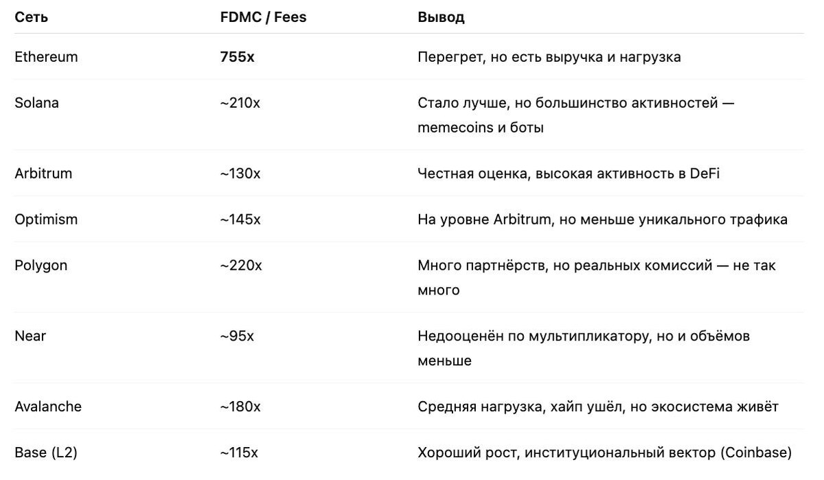 Если Ethereum — перегретый, но зарабатывающий бизнес, а LayerZero — просто переоценённая идея, то что насчёт остальных?