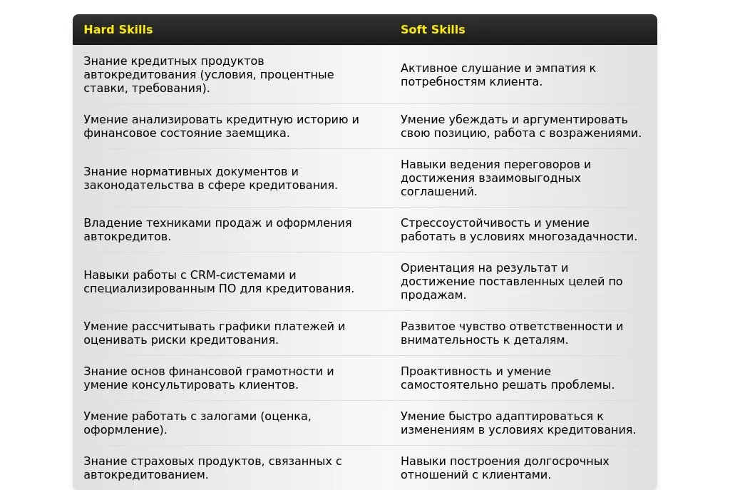 Адаптация раздела "Навыки" для специалиста по автокредитованию