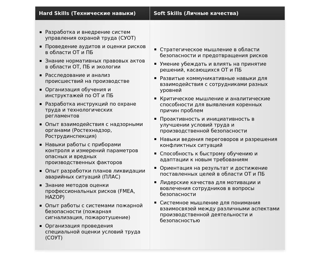 Для ведущих специалистов важно подчеркнуть свою экспертизу, управленческие навыки и масштаб реализованных проектов. Покажите, какую ценность вы можете принести компании и как ваш опыт поможет ей достичь своих целей в области ОТ и ПБ.
