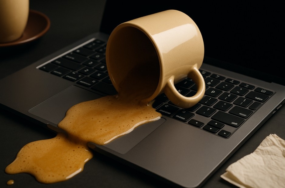 Вот именно так выглядело 87 % «кофейных» поломок, которые попадали ко мне в мастерскую. Поэтому сегодня — длинное, подробное, но дружелюбное руководство: как именно жидкость калечит ПК, почему «сушка феном» почти всегда вред, какая экстренная последовательность действий спасёт ноутбук, и что сделать заранее, чтобы капля не превратилась в 500 € ремонта.