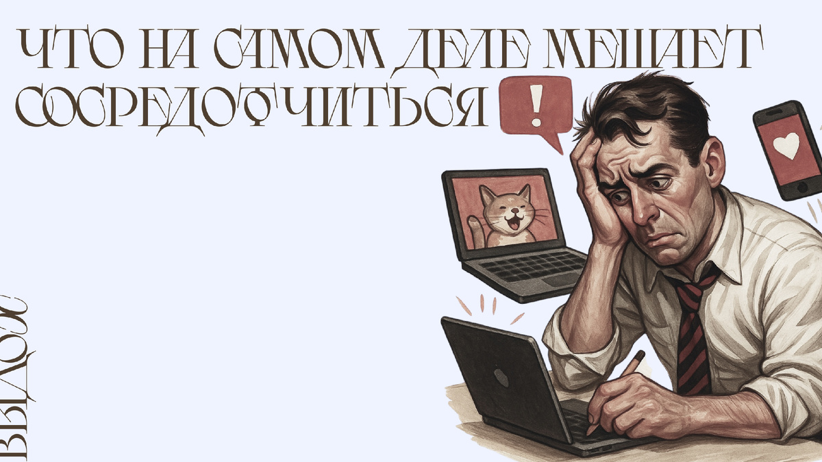 Телефон убрали — а мозг всё равно отвлёкся. Что на самом деле мешает нам сосредоточиться