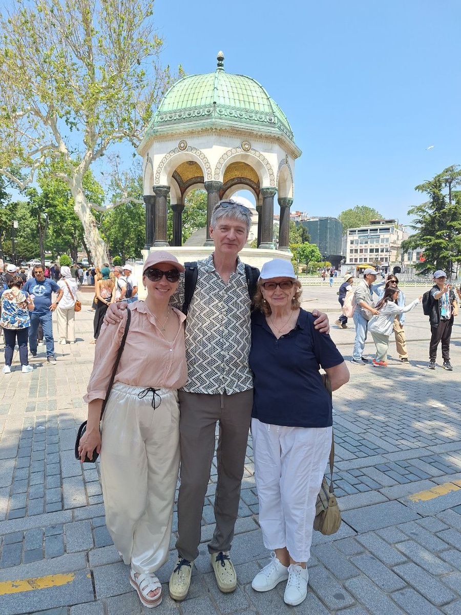 Вчерашний вечер растворился в теплом, обволакивающем воздухе Стамбула, словно сладкий дым кальяна. Наш с Марией самолет мягко приземлился из прохладного Эдинбурга, принеся нас в объятия города на двух континентах. И почти одновременно, из Франкфурта-на-Майне, прибыла Она – моя Мама. Встреча в аэропорту, полная объятий и смеха, была первым, самым теплым аккордом нашей стамбульской симфонии. А сегодня утром, когда первые лучи солнца уже золотили минареты Голубой мечети, мы вчетвером – я, Мария, Мама и наша дорогая стамбульская подруга Зейтуна, сияющая, как всегда, – отправились в путь. Город раскрывался перед нами, как книга, полная древних тайн. Первым делом мы спустились в глубины Цистерны при одном успешном сувенирном магазине. Для нас вход в эту малоизвестную цистерну без предварительной записи. Там работает моя хорошая знакомая Диляра. Влажный, прохладный воздух окутал нас, а сводчатые потолки, поддерживаемые десятками колонн, казались порталом в иное измерение. Каждый шаг эхом
