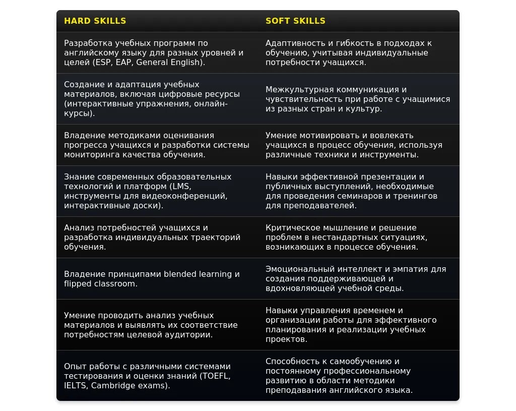 Скрытые требования: Компания уделяет большое внимание развитию сотрудников. В резюме стоит упомянуть участие в конференциях и семинарах по методике преподавания английского языка.