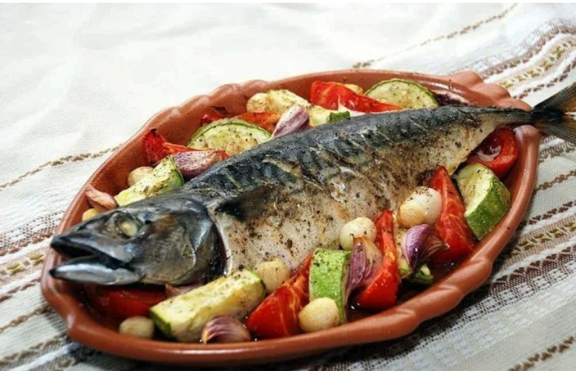 1. Запеченная рыба с овощами 🐟🥦🍅 — простое блюдо, которое сохраняет все полезные свойства рыбы и овощей.